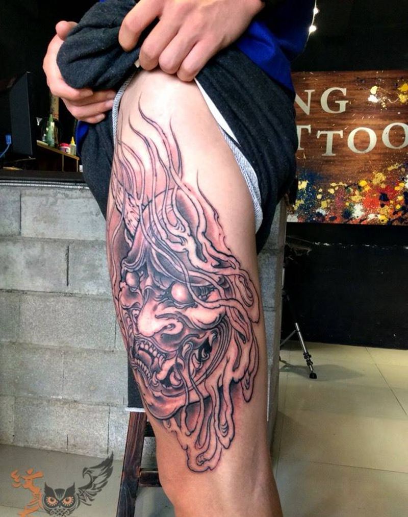 • T网红王老大花腿龙纹身图片_腿部新传统纹身图案
