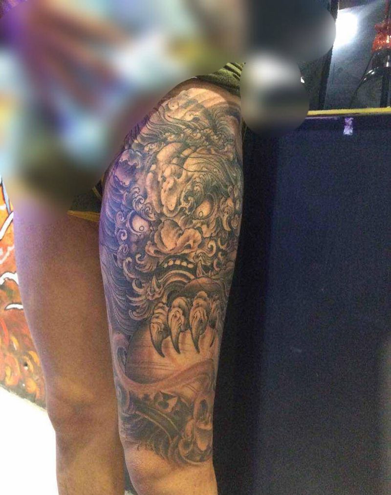 当前位置: 首页 >辽宁省葫芦岛市纹身店-二刚纹身纹身图案>唐狮子纹身图片