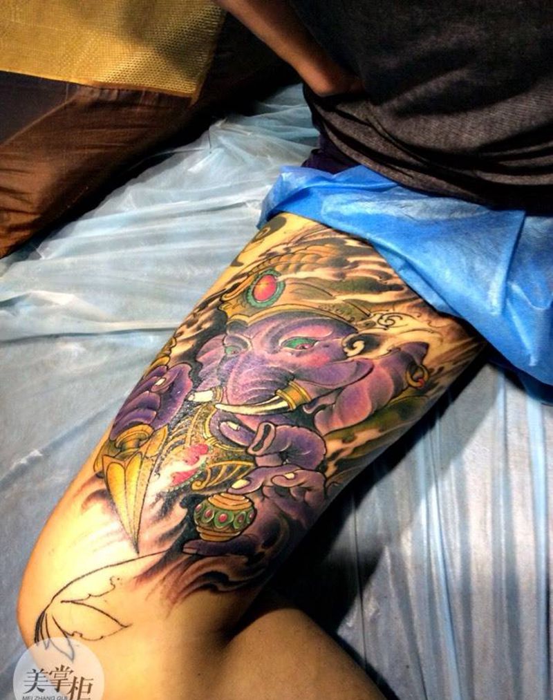 新传统象财神纹身图片