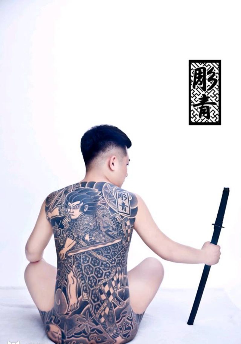 • 黑灰满背纹身图案