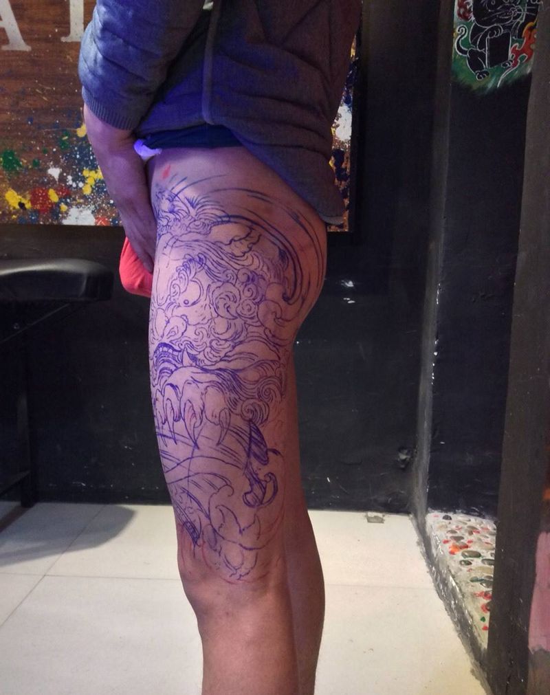 • T网红王老大花腿龙纹身图片_腿部新传统纹身图案