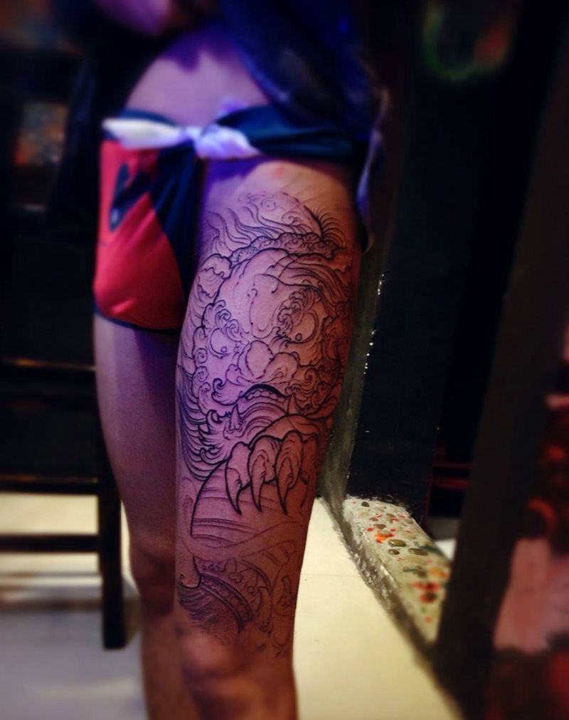 当前位置: 首页 >辽宁省葫芦岛市纹身店-二刚纹身纹身图案>唐狮子纹身图片