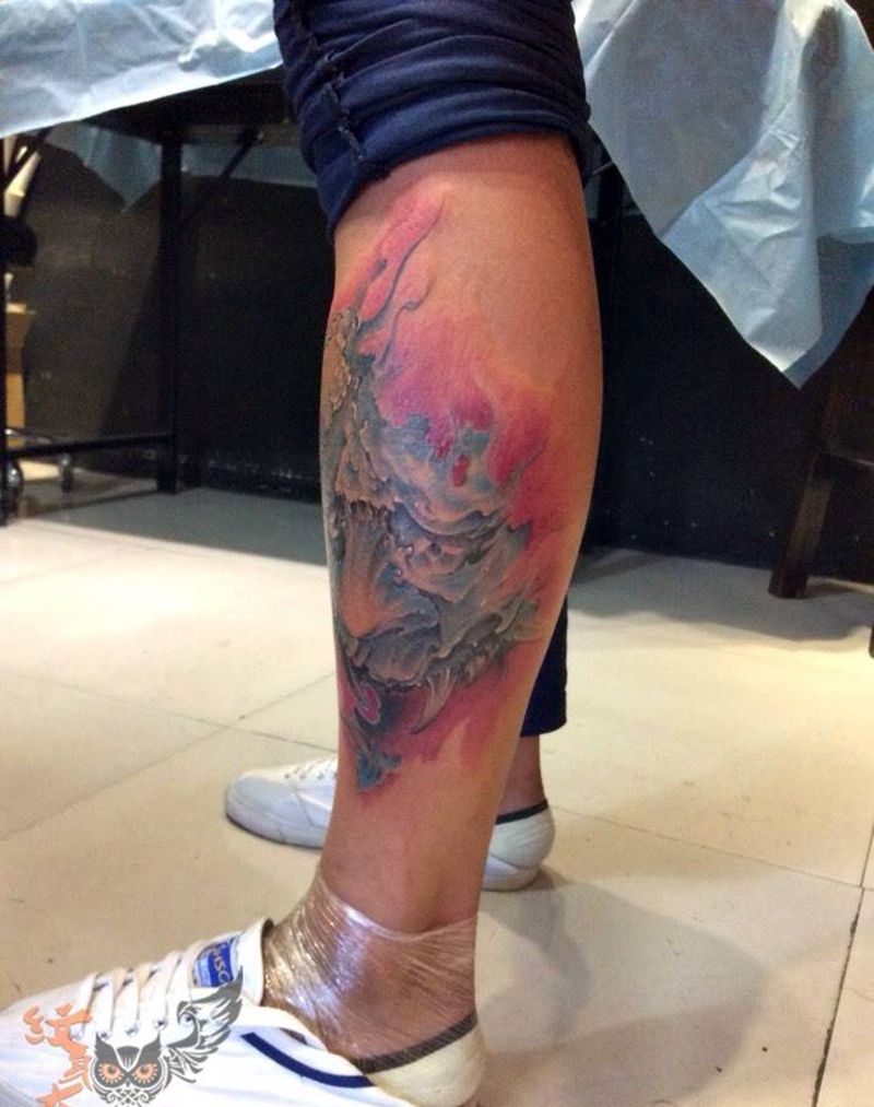 • T网红王老大花腿龙纹身图片_腿部新传统纹身图案
