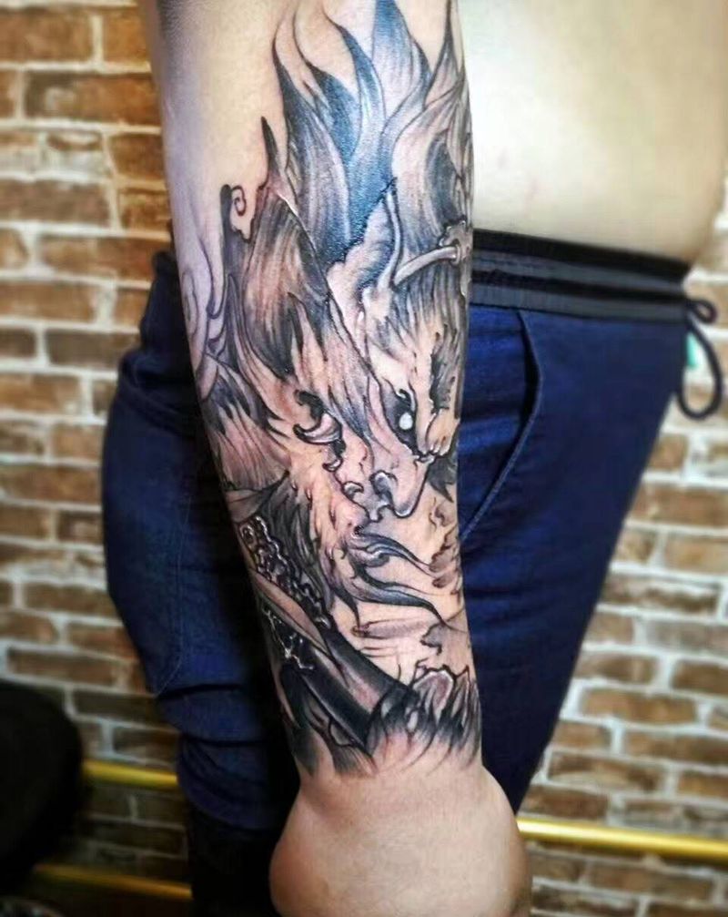 • T网红王老大花腿龙纹身图片_腿部新传统纹身图案
