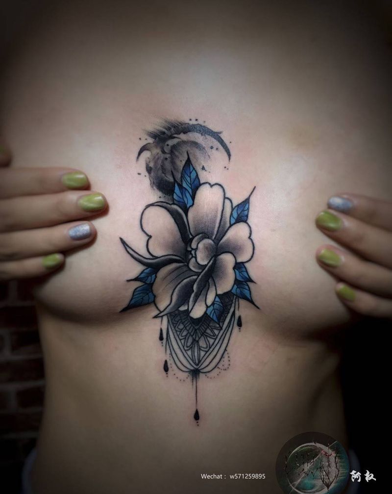 • 女性大花胸纹身_43张霸气漂亮的女性大花胸纹身图案作品