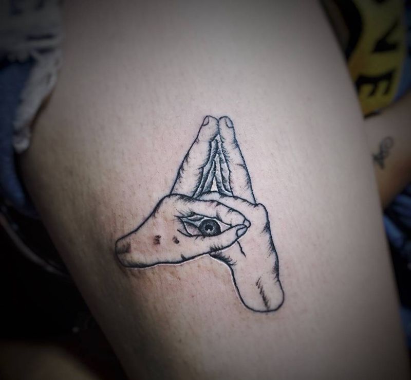 • 手背潮流时尚的玫瑰花眼睛纹身图案