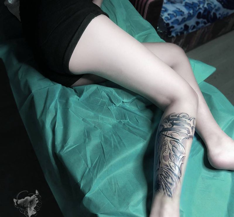 • T网红王老大花腿龙纹身图片_腿部新传统纹身图案