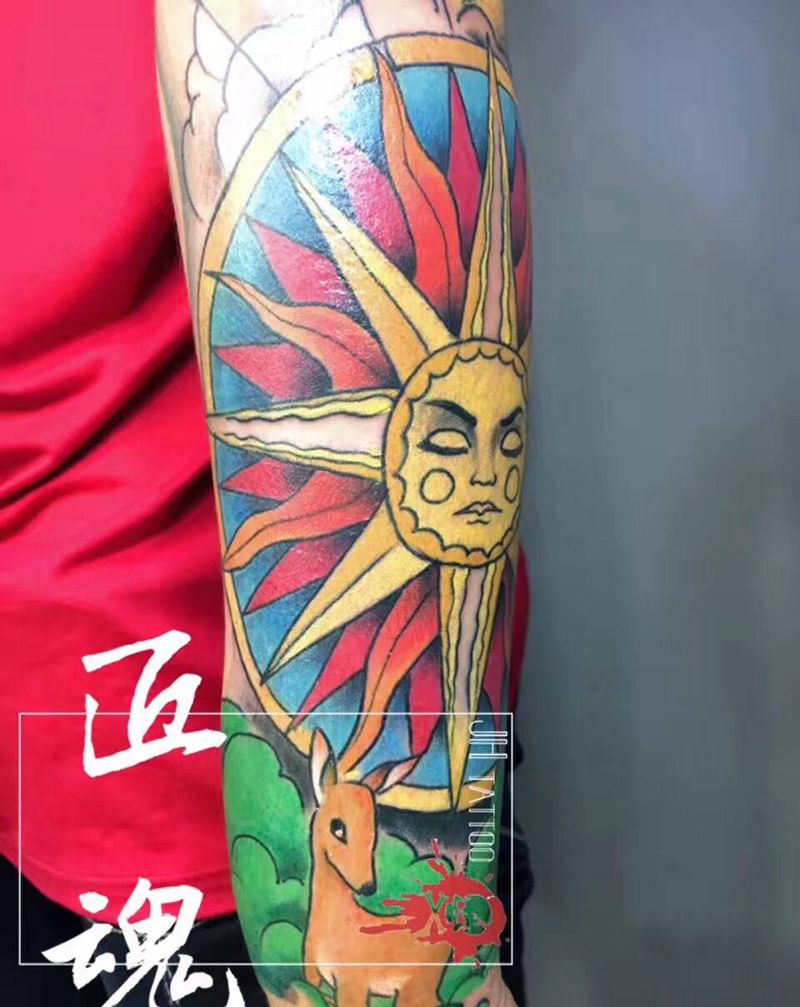 当前位置: 首页 >吉林省长春市纹身店-匠魂刺青纹身图案>小臂外侧太阳神纹身图片_成品手臂纹身图案