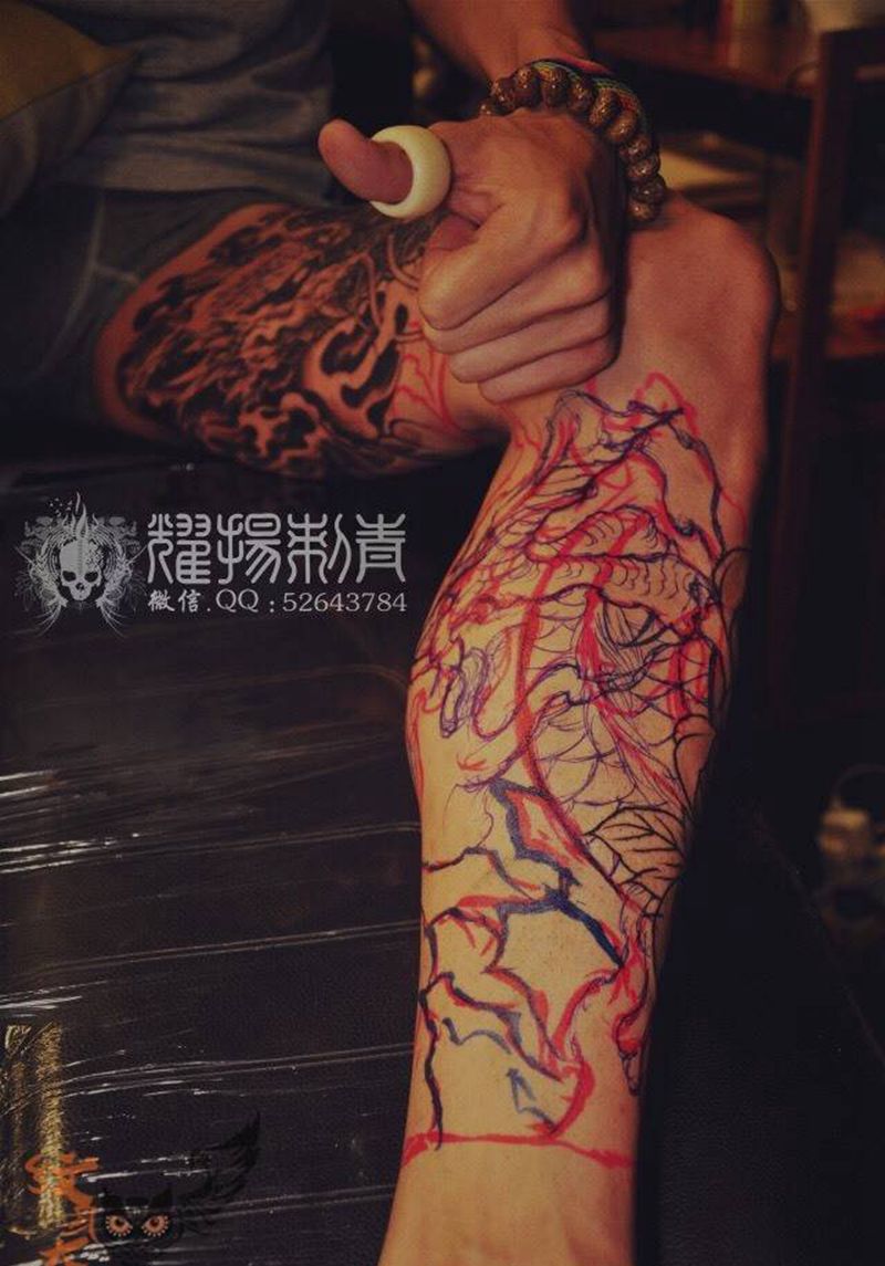 • T网红王老大花腿龙纹身图片_腿部新传统纹身图案