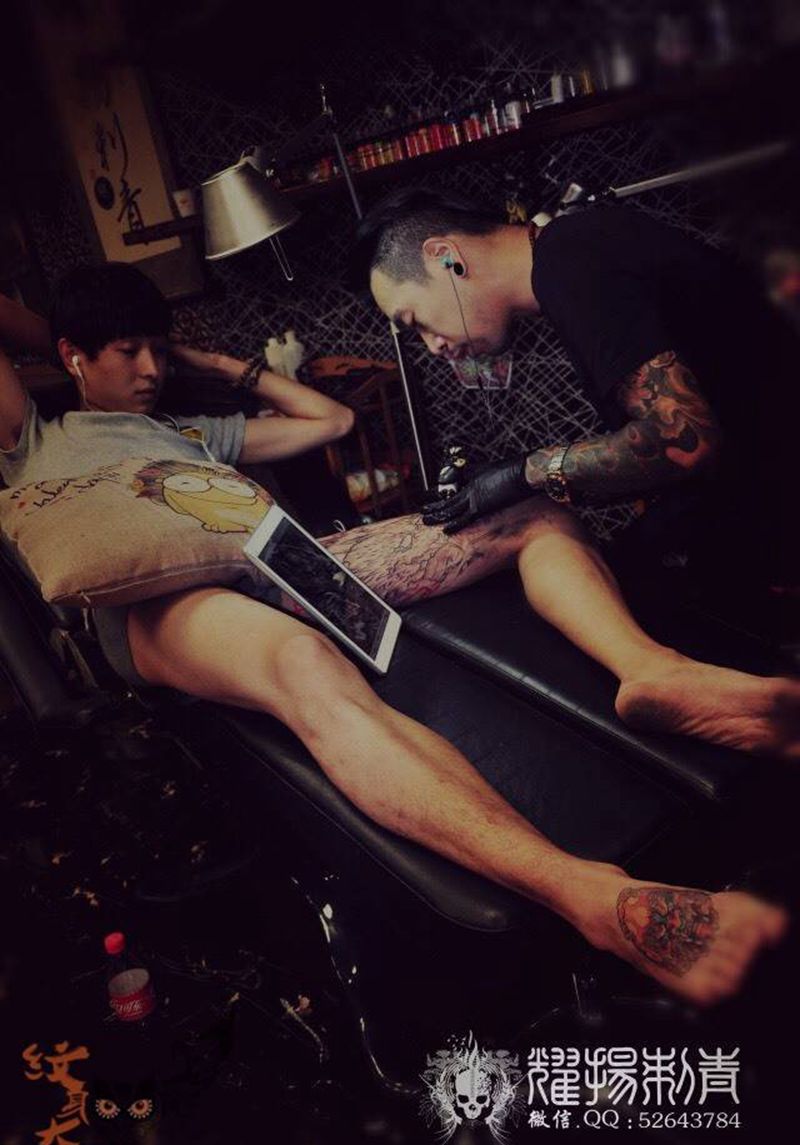 花腿龙纹身图片_成品腿部传统肖像动物人物鬼神原创宗教花腿纹身图案