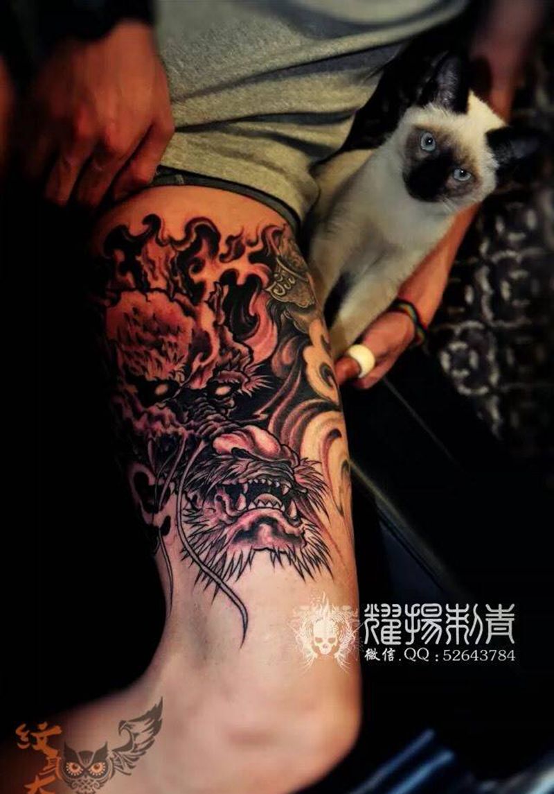 • T网红王老大花腿龙纹身图片_腿部新传统纹身图案