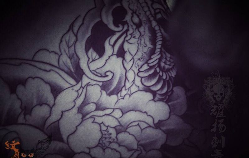 黑灰满背纹身图案