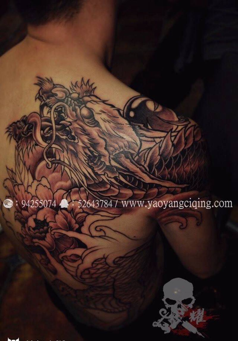 耀扬刺青家族-龙背纹身图片_成品肩部腹部背部腰部传统动物鬼神满背花臂纹身图案
