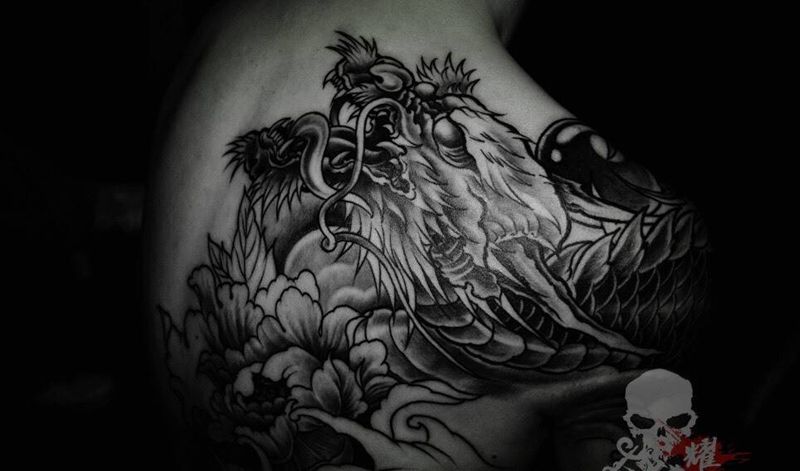 耀扬刺青家族-龙背纹身图片_成品肩部腹部背部腰部传统动物鬼神满背花臂纹身图案