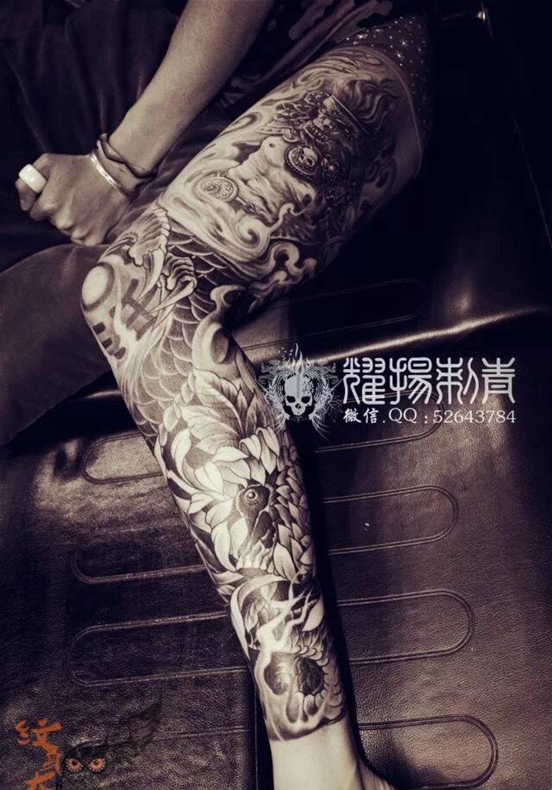 花腿龙 完成纹身图片_成品腿部肖像传统写实动物人物鬼神宗教花腿纹身图案