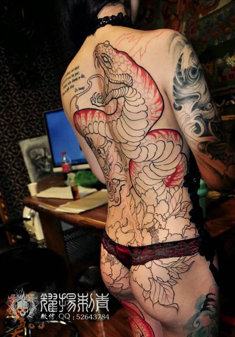 大背花蛇纹身图片_成品背部臀部腰部腿部传统动物鬼神原创满背纹身图案