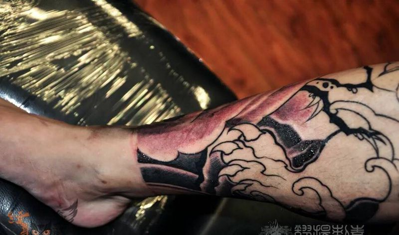 • T网红王老大花腿龙纹身图片_腿部新传统纹身图案