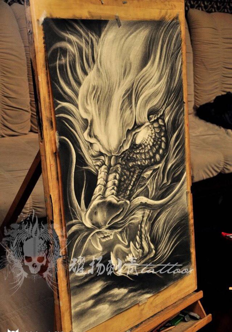 当前位置: 首页 >吉林省长春市纹身店-耀扬刺青纹身图案>原创大龙头纹身图片_成品手稿腿部传统动物鬼神宗教原创耀扬刺青花腿纹身图案
