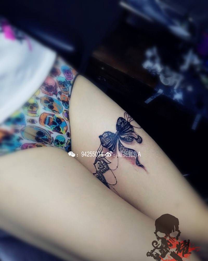 性感小蕾丝纹身图片_成品臀部腿部欧美写实清新原创几何花腿耀扬刺青纹身图案