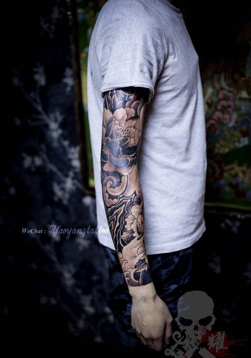 花臂男-耀扬刺青纹身图片_成品手臂传统国画花臂原创生活耀扬刺青静物植物纹身图案