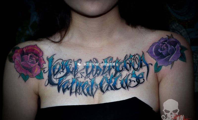 花胸美女 耀扬刺青家族纹身图片_成品插画胸部清新欧美字符原创花胸植物图腾纹身图案