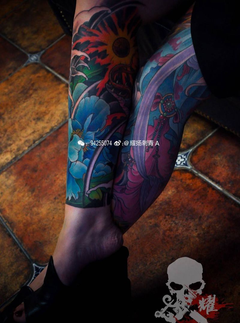 Lisa双花腿 耀扬刺青纹身图片_动物鬼神原创花腿生活成品腿部脚部传统写实纹身图案