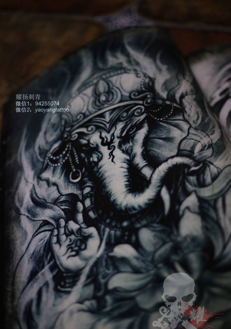 黑灰满背纹身图案