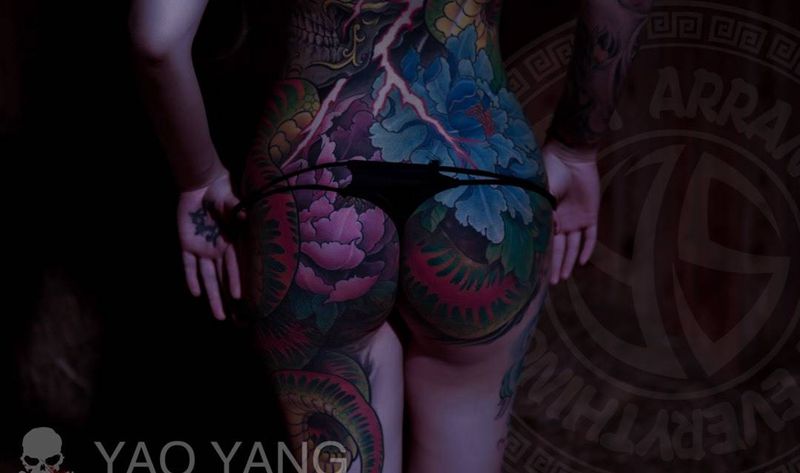 耀扬刺青作品纹身图片_成品臀部腰部背部腿部传统原创耀扬刺青生活满背纹身图案
