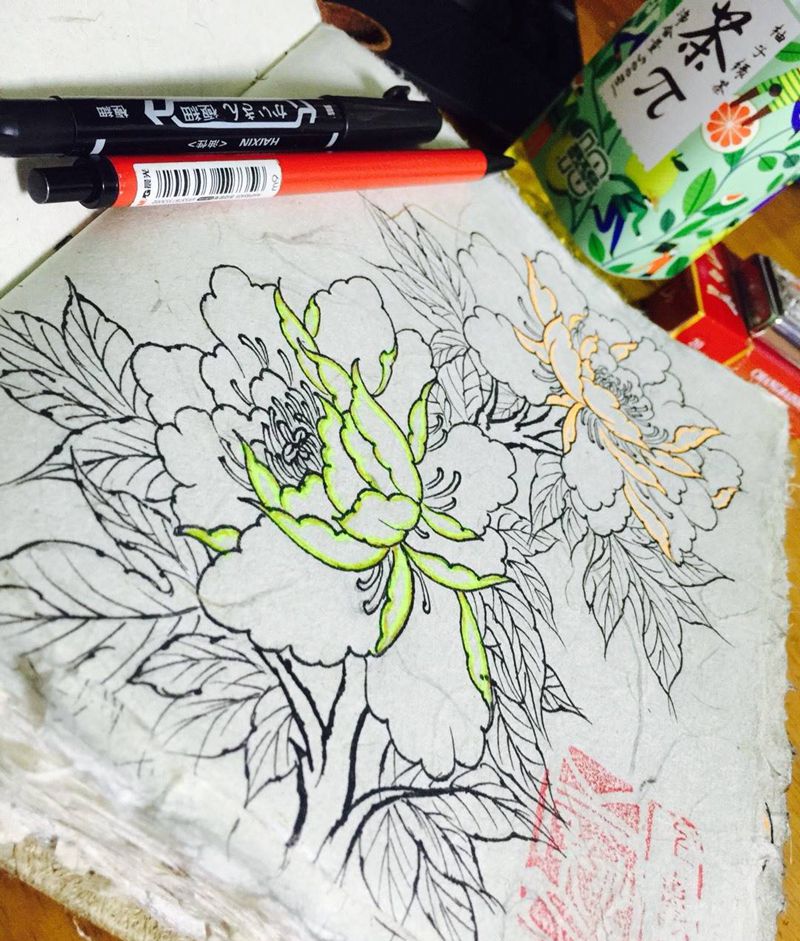 耀扬刺青手稿纹身图片_成品手稿插画传统清新国画动物植物原创生活纹身图案