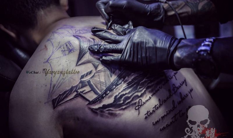 耀扬刺青作品纹身图片_成品肩部写实欧美原创耀扬刺青满背生活静物肖像纹身图案