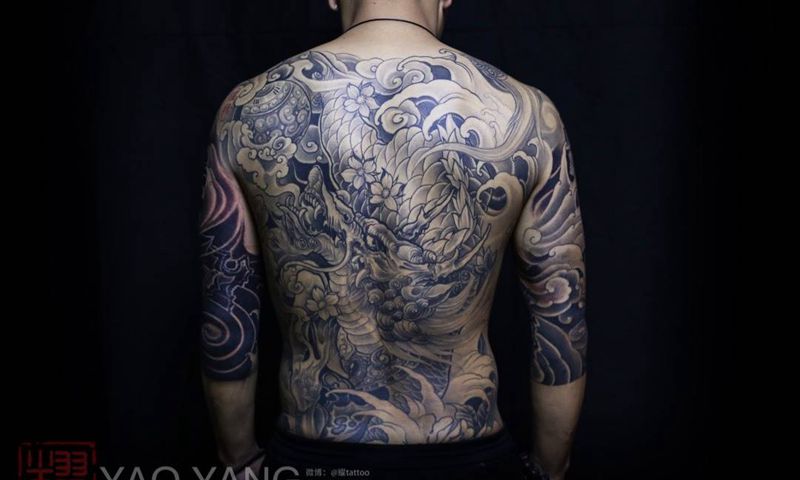 • T云龙九郎纹身图片_背部老传统云龙九郎纹身图案