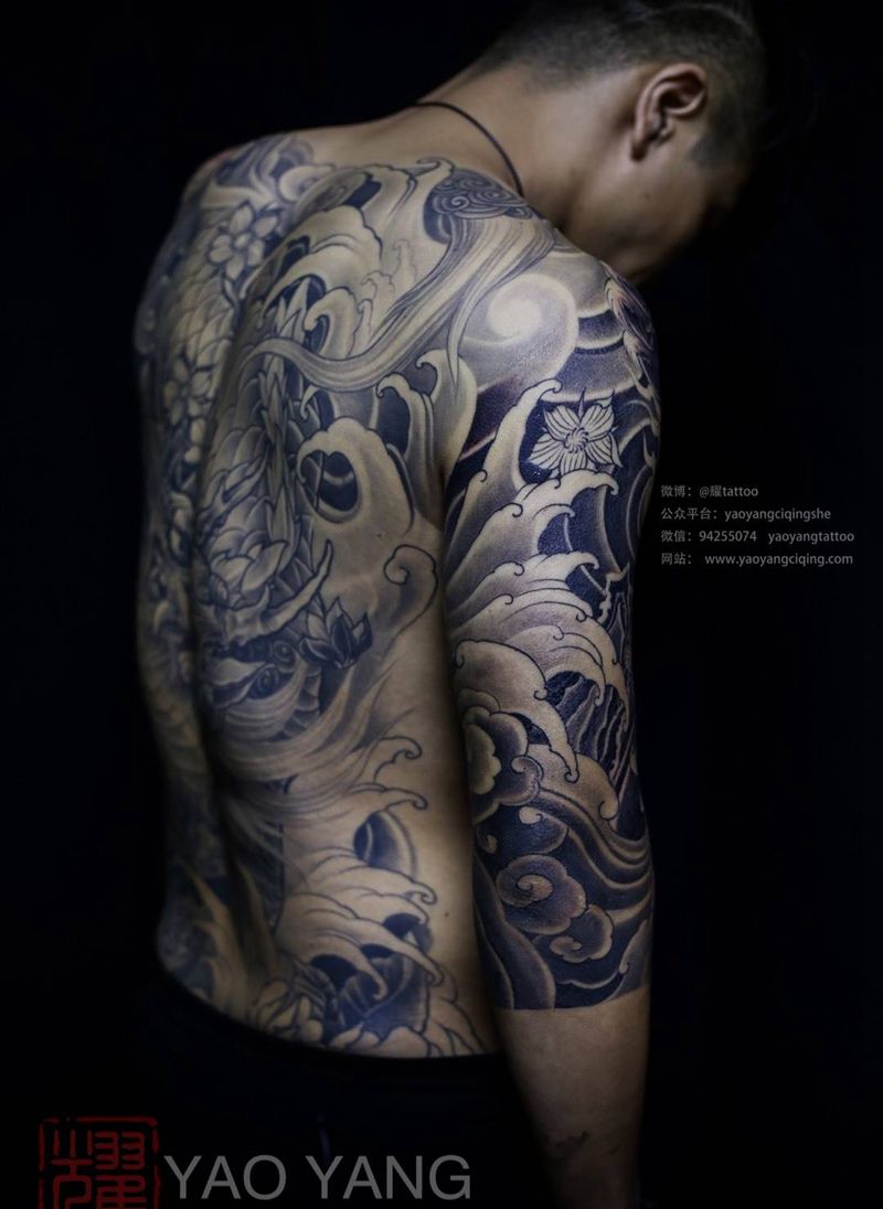 • 黑灰满背纹身图案