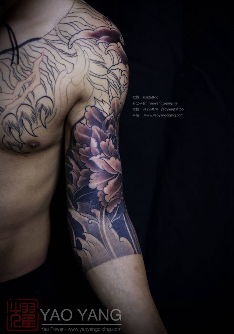 耀扬刺青作品 全甲纹身图片_成品背部肩部胸部手臂传统动物花胸花臂满背纹身图案
