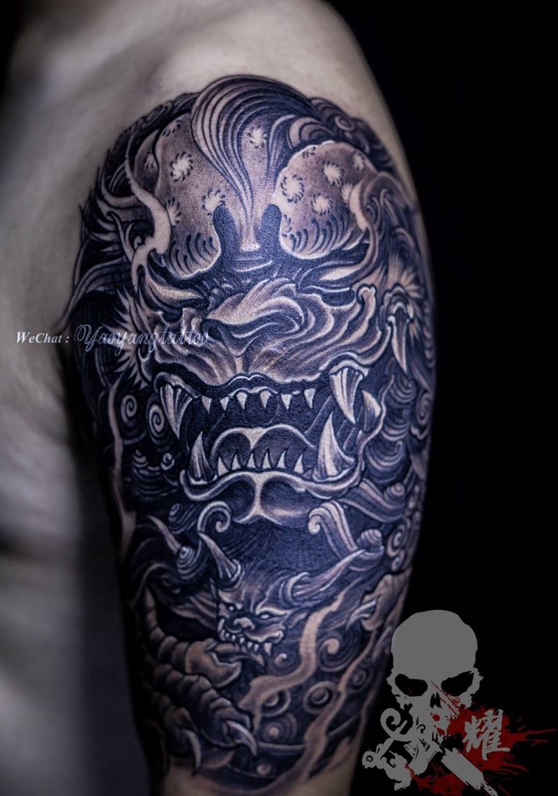 耀扬刺青 唐狮纹身图片_成品手臂传统肖像动物鬼神原创花臂生活耀扬刺青纹身图案