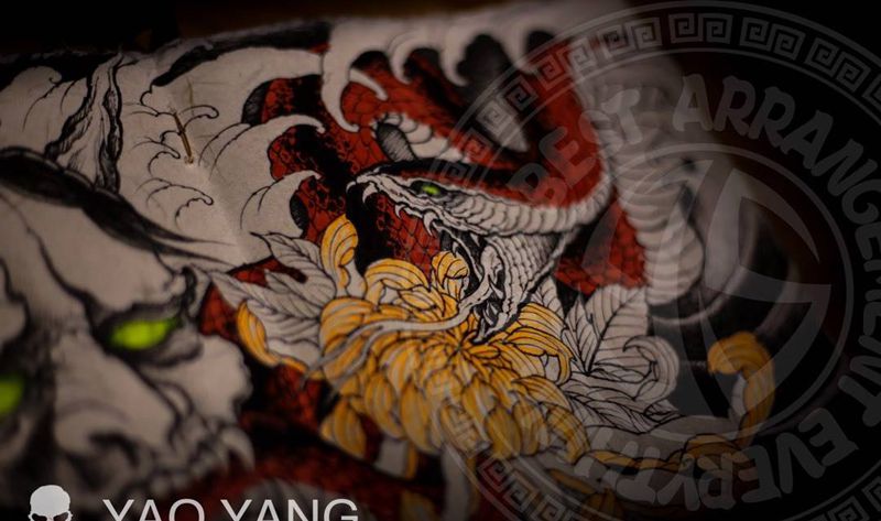 耀扬刺青手稿纹身图片_手稿插画成品生活耀扬刺青原创动物鬼神传统纹身图案