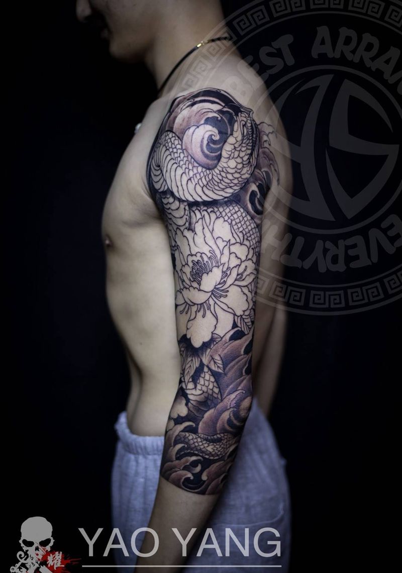 耀扬刺青作品纹身图片_成品手臂传统动物原创花臂耀扬刺青生活植物纹身图案