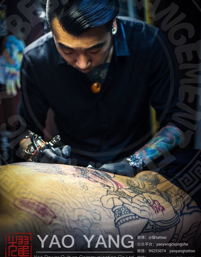 耀扬刺青 满背象神纹身图片_背部传统肖像动物人物鬼神原创宗教满背耀扬刺青纹身图案