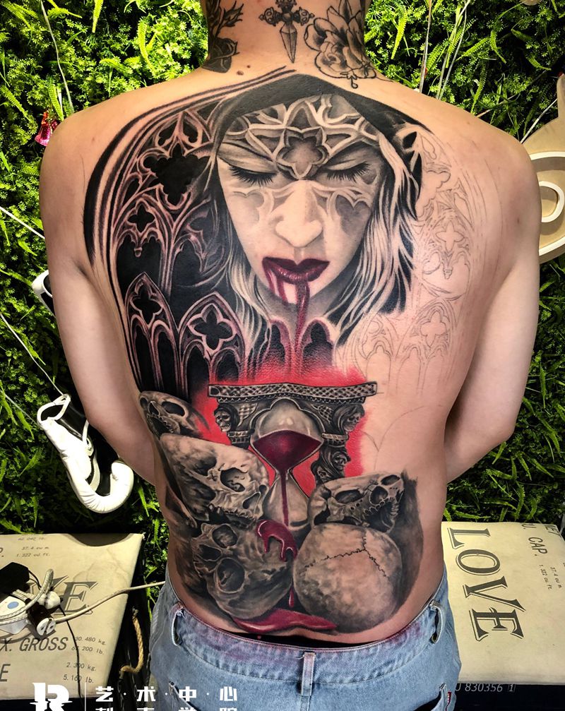 黑灰满背纹身图案