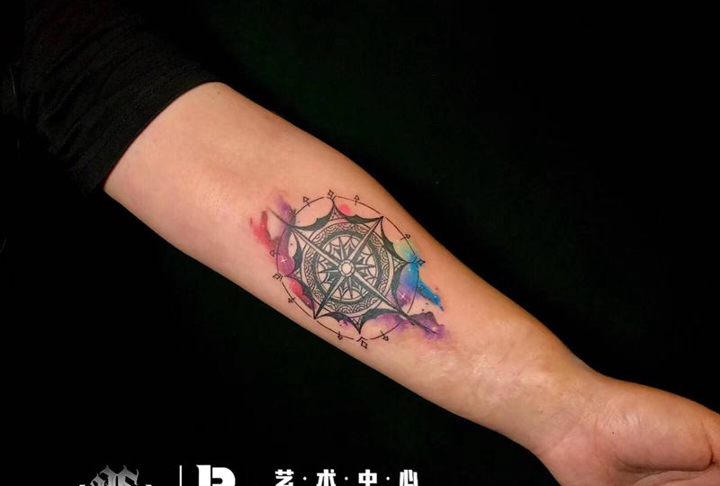 店内作品纹身图片_手臂水彩水墨纹身图案