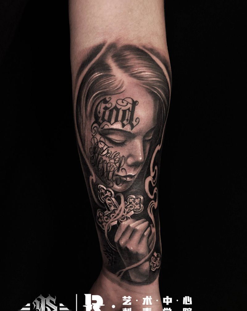 小臂写实作品纹身图片_手臂欧美写实纹身图案