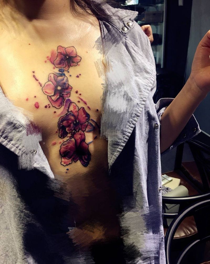 • 女性大花胸纹身_43张霸气漂亮的女性大花胸纹身图案作品