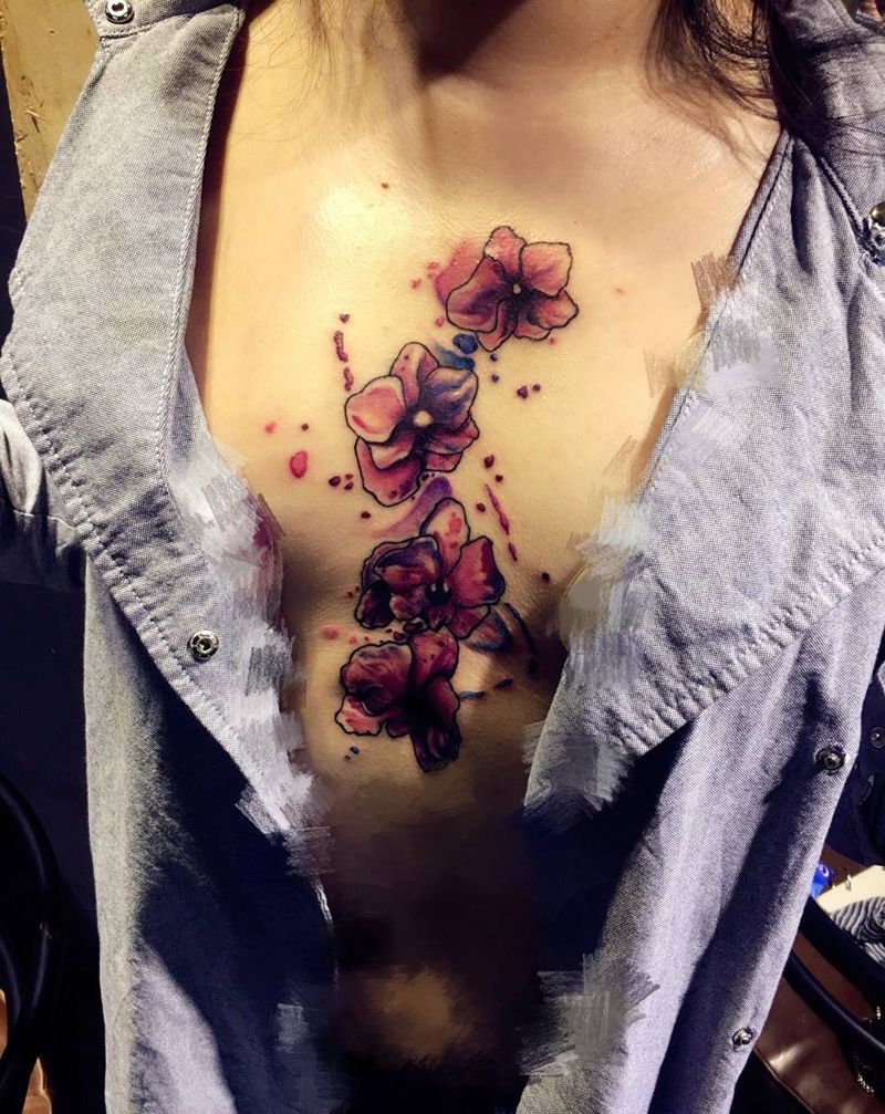 • 女性大花胸纹身_43张霸气漂亮的女性大花胸纹身图案作品