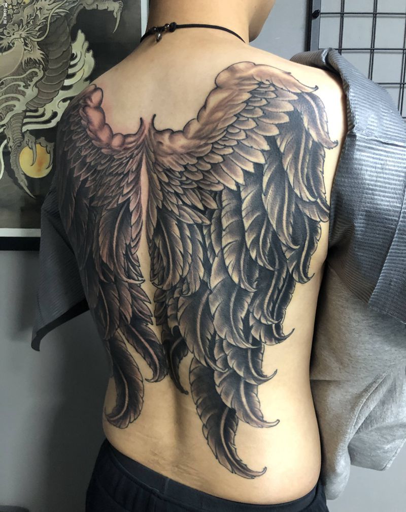 • 纹身吧推荐的披肩图腾半胛纹身图案作品展示