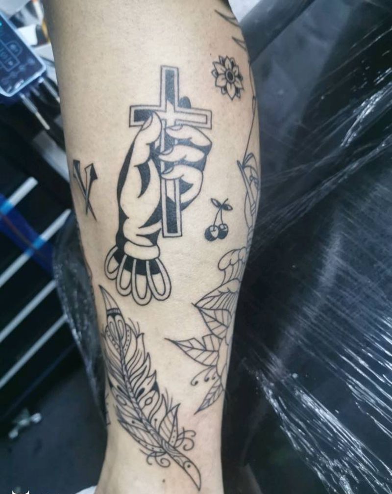 • H5款精美的小型十字架纹身 迷你纹身图案