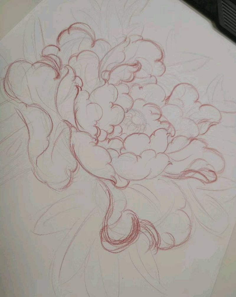 牡丹手稿纹身图片_新传统老传统纹身图案