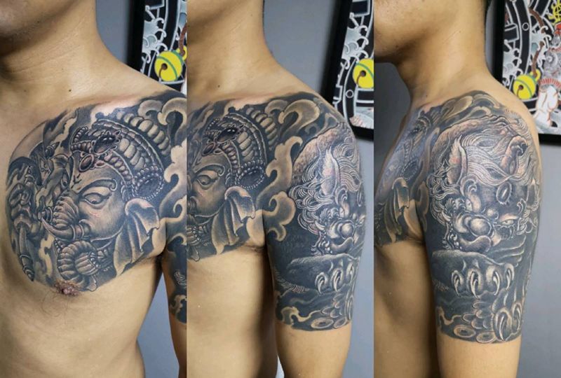 • 纹身吧推荐的披肩图腾半胛纹身图案作品展示