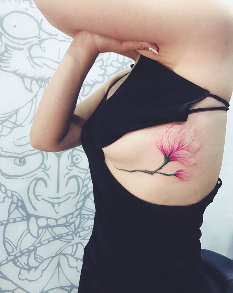 • 女性大花胸纹身_43张霸气漂亮的女性大花胸纹身图案作品