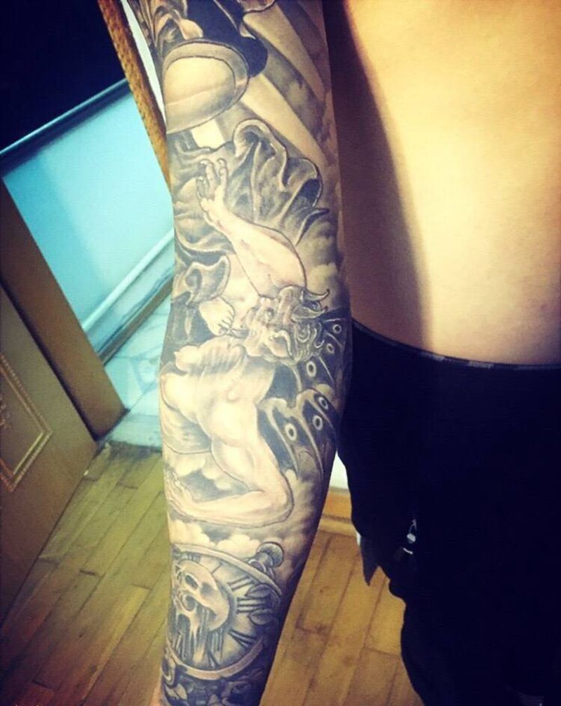当前位置: 首页 >吉林省长春市纹身店-纹名堂刺青纹身图案>天使花臂纹身图片