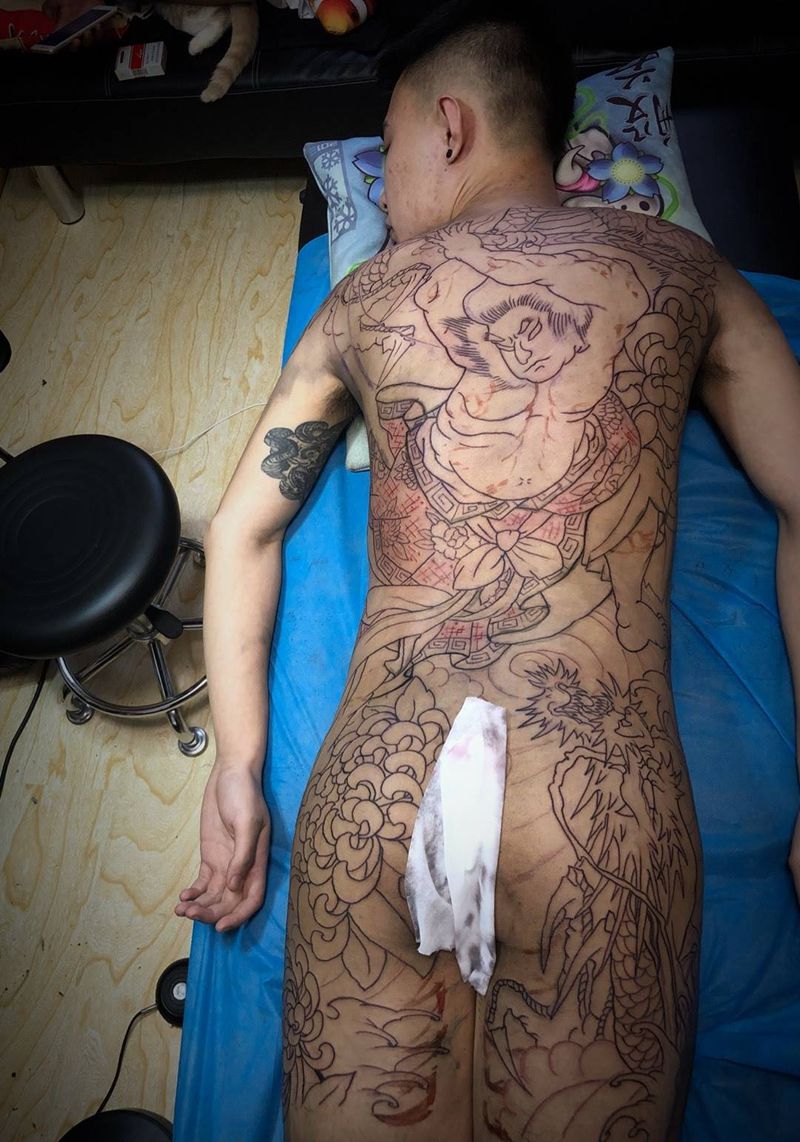 当前位置: 首页 >吉林省长春市纹身店-耀扬刺青旗舰店纹身图案>满背 初步线条。纹身图片