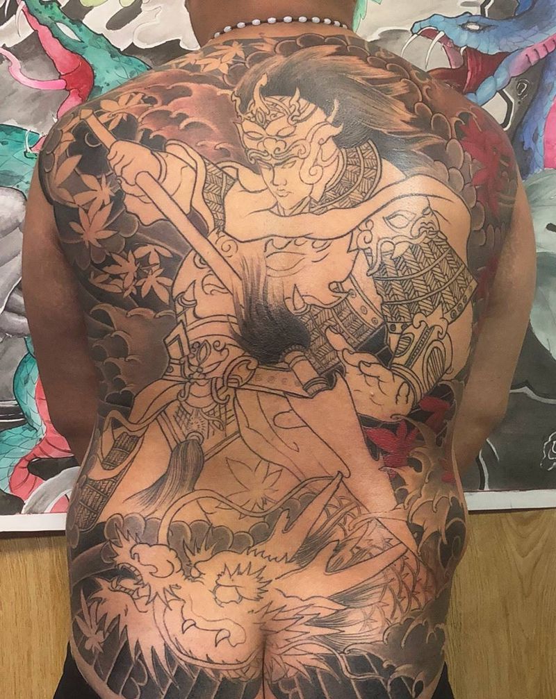 满背赵云 未完成纹身图片